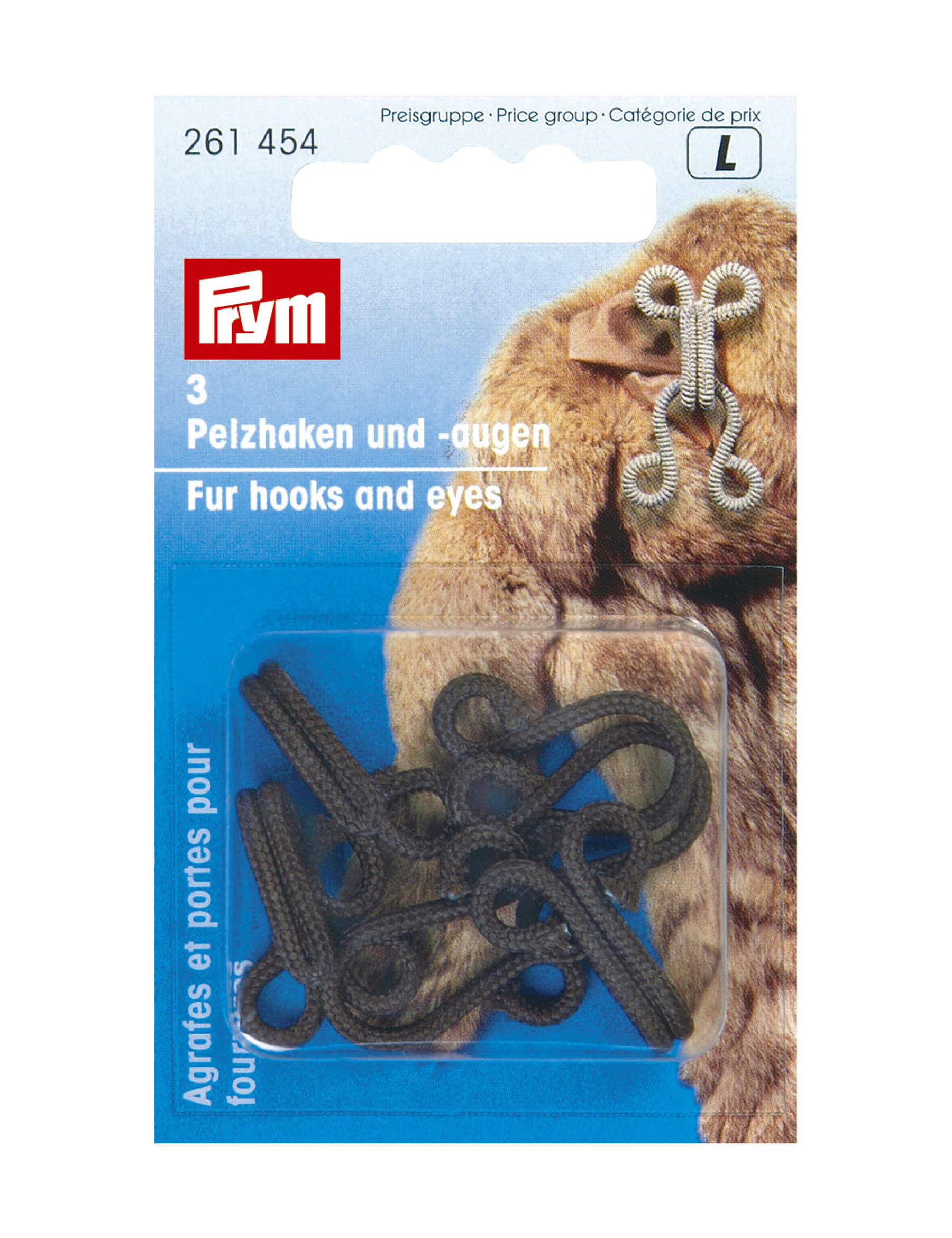 Passend für alle Arten von Pelzen und Pelzimitaten bietet Prym die praktischen und dezenten Haken- und Ösenverschlüsse zum Annähen in den Farben Schwarz, Grau, Braun und Beige in Packungen zu je 3 Stück an. Für den Profibedarf gibt es im Sortiment auch Großpackungen von 200 Stück in Schwarz und Braun oder 1000 Stück in Schwarz, Beige und Braun. Mit einem Polyestergarn umsponnen, bestechen diese Verschlüsse vor allem durch ihre edle Optik, weshalb sie in der Industrie häufig bei der Anfertigung hochwertiger Echtpelze verwendet werden. Haken und Augen haben jeweils eine Länge von ca. 25 mm und können dank der seitlichen Ösen problemlos in die Kleidung eingenäht werden.