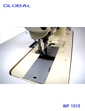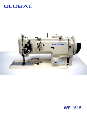 Einnadel Dreifachtransport Nähmaschine mit 9 mm Stichlänge und Hubhöhenverstellung über Stellrad einstellbar. Die Maschine ist ausgestattet mit einem großen Vertikalgreifer.